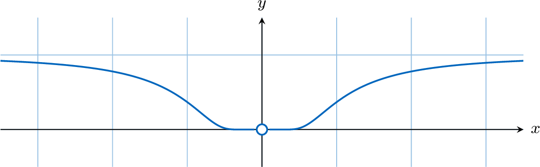 The graph of the function \(f(x) = e^{-1/x^2}\) is shown below.