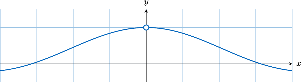 The graph of the function \(f(x) = \dfrac{\sin(x)}{x}\) is shown below.