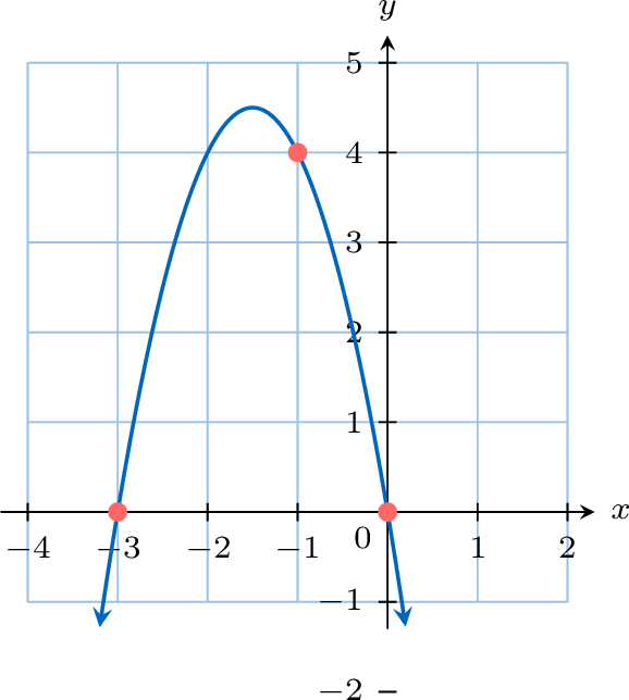 The graph of a quadratic function is shown below. Find its equation in the form \(y=ax^2+bx+c\).