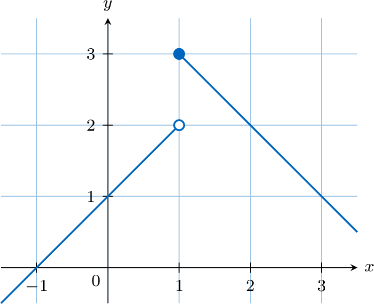 The graph of a function \(f\) is shown below. Is the function continuous at \(x=1\)?