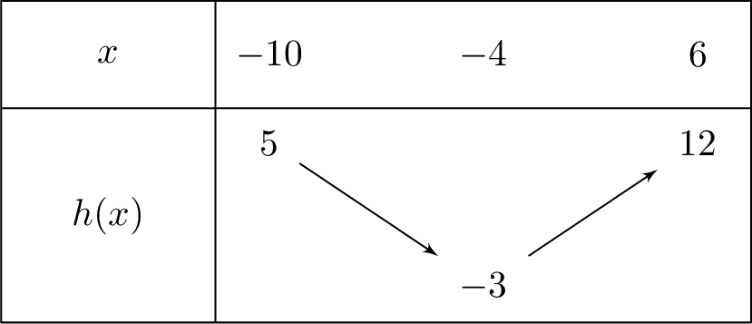 Consider a function \(h\) whose variation table is: