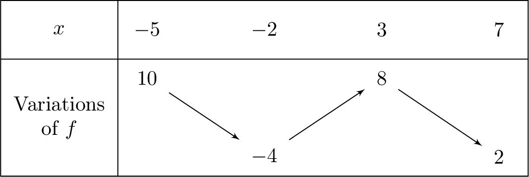 of \(f\) on \([-5, 7]\)? For what value of \(x\) is it reached?