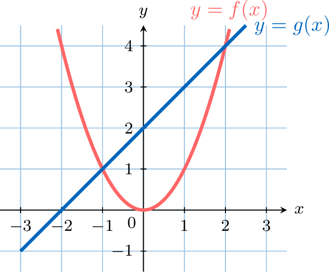 Solve \(f(x) = g(x)\).