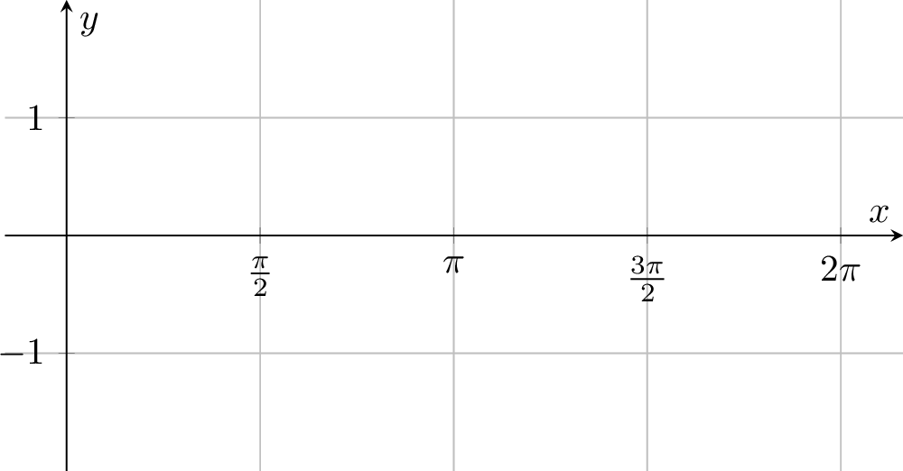 Sketch the graph of \(y = \cos\left(x - \frac{\pi}{2}\right)\) for \(0 \le x \le 2\pi\).
