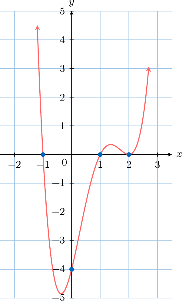 Consider the cubic polynomial \(P(x) = 2x^3 + 5x^2 - 10x + 1\). We can factor out the leading term, \(2x^3\), to see what happens for large \(|x|\):$$ P(x) = 2x^3 \left( 1 + \frac{5x^2}{2x^3} - \frac{10x}{2x^3} + \frac{1}{2x^3} \right) = 2x^3 \left( 1 + \frac{5}{2x} - \frac{5}{x^2} + \frac{1}{2x^3} \right) $$As \(x\) becomes very large (positive or negative), the fractions inside the parentheses, such as \(\frac{5}{2x}\), \(\frac{5}{x^2}\), and \(\frac{1}{2x^3}\), all approach zero.$$ \text{As } |x| \to \infty, \quad \left( 1 + \frac{5}{2x} - \frac{5}{x^2} + \frac{1}{2x^3} \right) \to (1 + 0 - 0 + 0) = 1 $$Therefore, for very large values of \(|x|\), the function behaves like its leading term:$$ P(x) \approx 2x^3 $$This general principle allows us to predict the end behaviour of any polynomial.