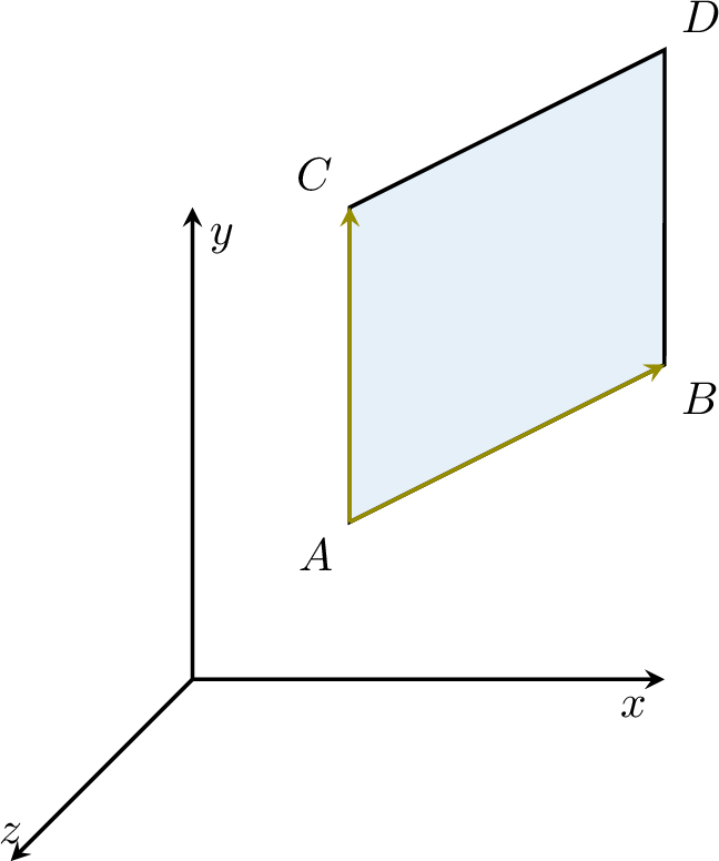 Calculate the area of the parallelogram with adjacent sides \(\Segment{AB}\) and \(\Segment{AC}\).