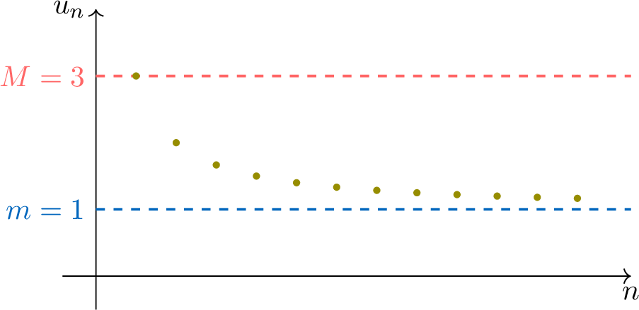 u_n &> 1.\end{aligned}$$Therefore, the sequence \((u_n)\) is bounded below by \(1\) (i.e. \(1\) is a lower bound).