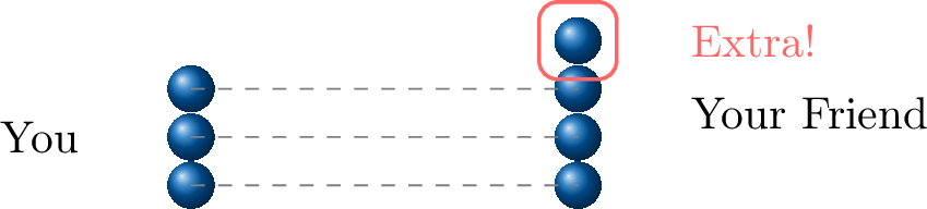Imagine you have a pile of marbles, and your friend has a different pile. How can we know for sure who has more?You have 3 marbles: Your friend has 4 marbles: Who has more marbles?