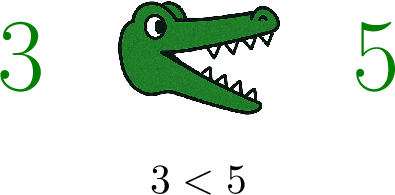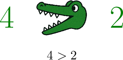 Helpful Trick: The Alligator Mouth Think of the \(>\) and \(<\) symbols as a hungry alligator's mouth. The alligator always wants to eat the bigger number!