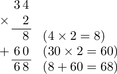 | \(2 \times 34\) | \(=\) | \(2 \times\) ![]() |