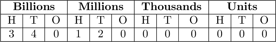| Ten Thousands | Thousands | Hundreds | Tens | Ones |