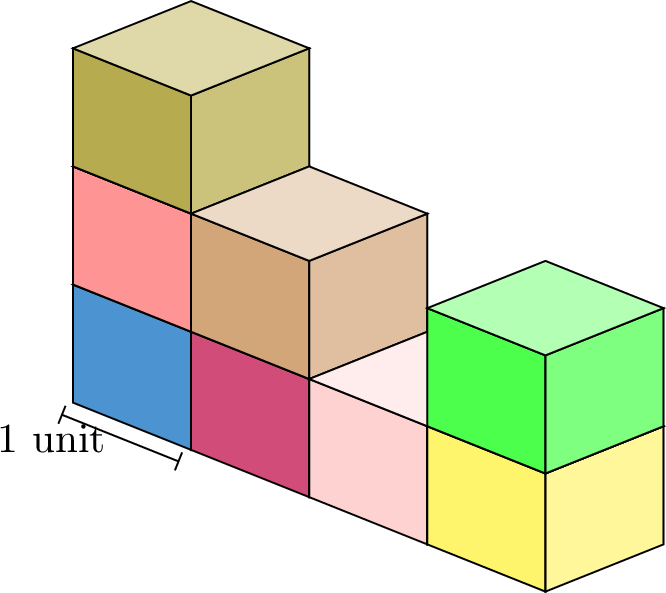 $$\begin{aligned}1 \, \text{cm}^3 &= 1 \, \text{cm} \times 1 \, \text{cm} \times 1 \, \text{cm} \\