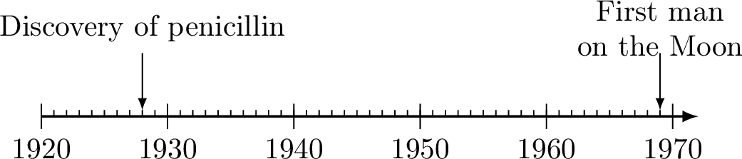 This timeline shows major scientific discoveries in the 20th century: