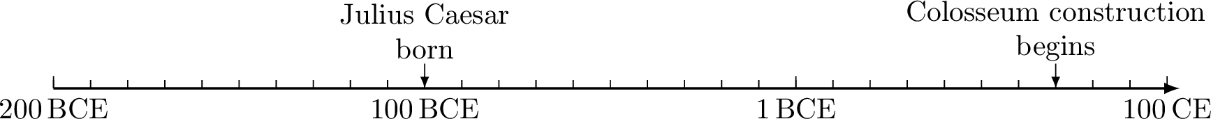 To find the duration between a BCE date and a CE date, we combine the years from both sides of the timeline and remember that there is no year 0.