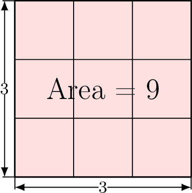 \(3^2 = 9\). The area of a square with side length \(3\) is \(9\) square units.