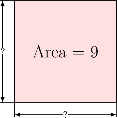 The side length is \(\sqrt{9} = 3\), because \(3 \times 3 = 9\).