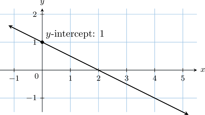 This line has slope \(m=-2\) and \(y\)-intercept \(c=1\).