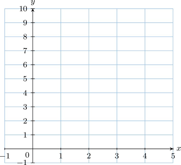 On the same set of axes, sketch the graphs of \(f\) and \(g\). (You may fill in a table of values for \(x = -1, 0, 1, 2, 3, 4, 5\).)