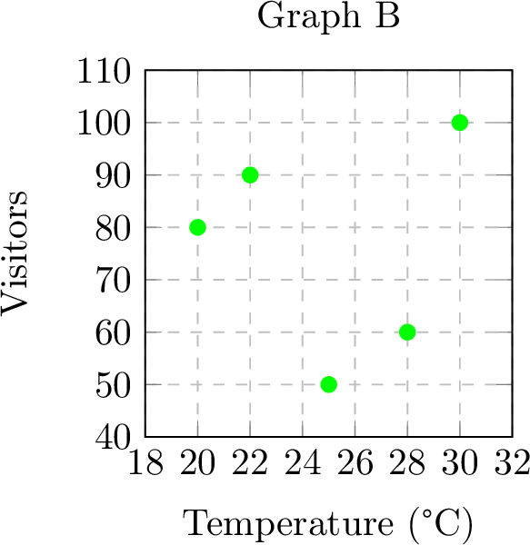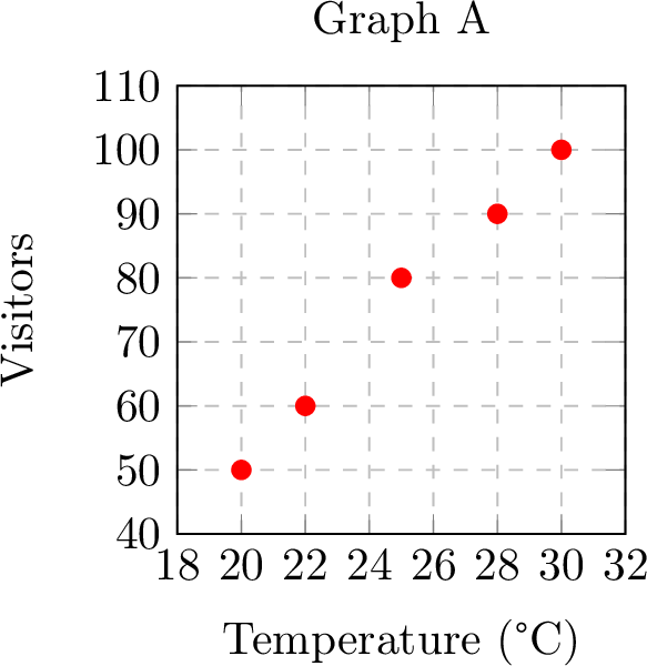 The table below shows daily temperature (\(x\), in °C) and beach visitors (\(y\)).