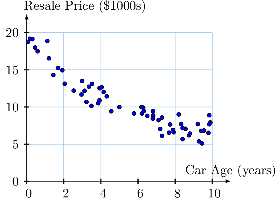 A study analyzes how the age of a used car affects its resale price.