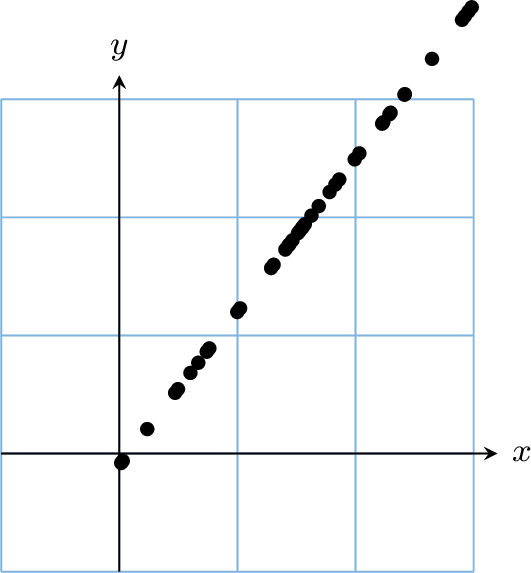Examine the scatter plot and choose the most appropriate correlation coefficient (\(r\)) from the options provided.