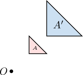 Identify the transformation that maps figure \(A\) (blue) onto figure \(A'\) (red).