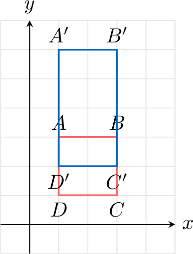 A linear transformation maps square \(ABCD\) onto rectangle \(A'B'C'D'\).
