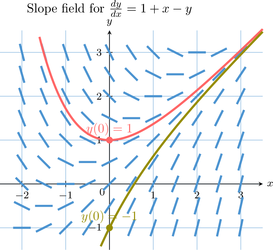 The core of the method is to approximate the derivative \(\dfrac{dy}{dx}\) using the gradient of the line segment connecting two consecutive points, \((x_n, y_n)\) and \((x_{n+1}, y_{n+1})\):$$ \dfrac{dy}{dx} \text{ at } (x_n, y_n) \approx \dfrac{y_{n+1} - y_n}{x_{n+1} - x_n} = \dfrac{y_{n+1} - y_n}{h}. $$Since the differential equation gives us the exact value of the derivative, \(\dfrac{dy}{dx} = f(x_n, y_n)\), we can set these equal:$$ \dfrac{y_{n+1} - y_n}{h}\approx f(x_n, y_n). $$Rearranging this formula to find the next \(y\)-value, \(y_{n+1}\), gives the iterative step:$$ y_{n+1} \approx y_n + h \cdot f(x_n, y_n). $$The collection of line segments created by this iterative procedure forms a polygonal approximation to the true solution curve.