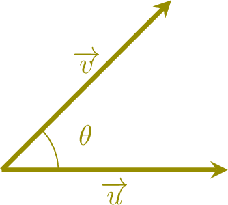 Let's explore this by considering two vectors, \(\Vect{u}=\begin{pmatrix} x \\y\\ \end{pmatrix}\) and \(\Vect{v}=\begin{pmatrix} x' \\y'\\ \end{pmatrix}\), with an angle \(\theta\) between them.