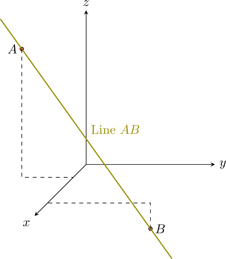 1. Let \(F\) be a generic point on the line: \(\Vect{f} = \Vect{a} + \lambda \Vect{b}\).