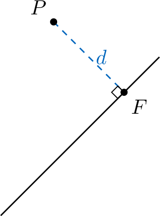 4. The shortest distance is \(d = \lVert \Vect{PF} \rVert\).