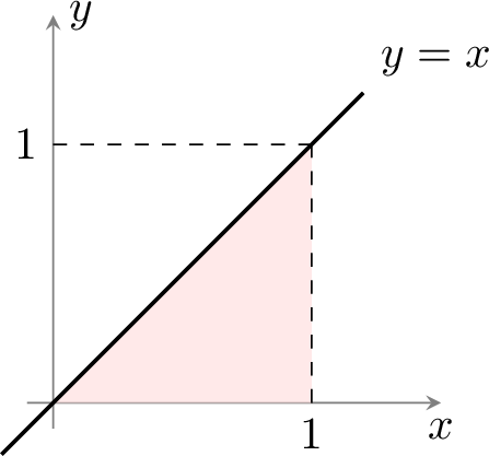 Consider the area between the curve of the function \(f(x)=x\) and the \(x\)-axis from \(x=0\) to \(x=1\).