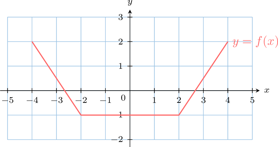The graph of \(y=f(x)\) is shown. On the same axes, sketch the graph of \(y = f(2x) - 1\).