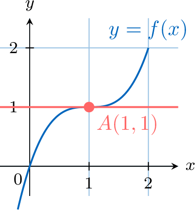 The graph of \(f(x) = (x-1)^3+1\) and its tangent at \(A(1,1)\) are shown. Find \(f'(1)\).