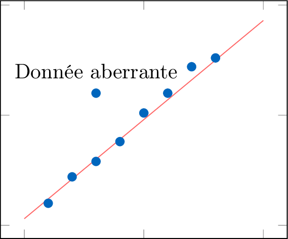 droite de régression des moindres carrés, écrite sous la forme \(y = ax + b\), est l'unique droite du meilleur ajustement qui modélise la relation linéaire entre \(x\) et \(y\). Elle est calculée en minimisant la somme des carrés des