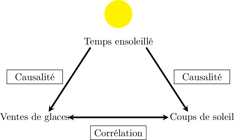 résidu est la distance verticale entre un point de donnée observé \((x_i, y_i)\) et le point prédit sur la droite de régression \((x_i, \hat{y}_i)\).$$ \text{Résidu} = y_{\text{observé}} - y_{\text{prédit}} = y_i - \hat{y}_i $$Une propriété clé est que la droite de régression des moindres carrés passe toujours par le point moyen, \((\bar{x}, \bar{y})\).