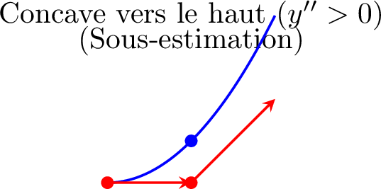 Lorsqu'une équation différentielle ne peut pas être résolue analytiquement, on peut approximer sa solution à l'aide de méthodes numériques. La méthode d'Euler est la plus simple, utilisant l'approximation linéaire pour avancer le long de la courbe solution.