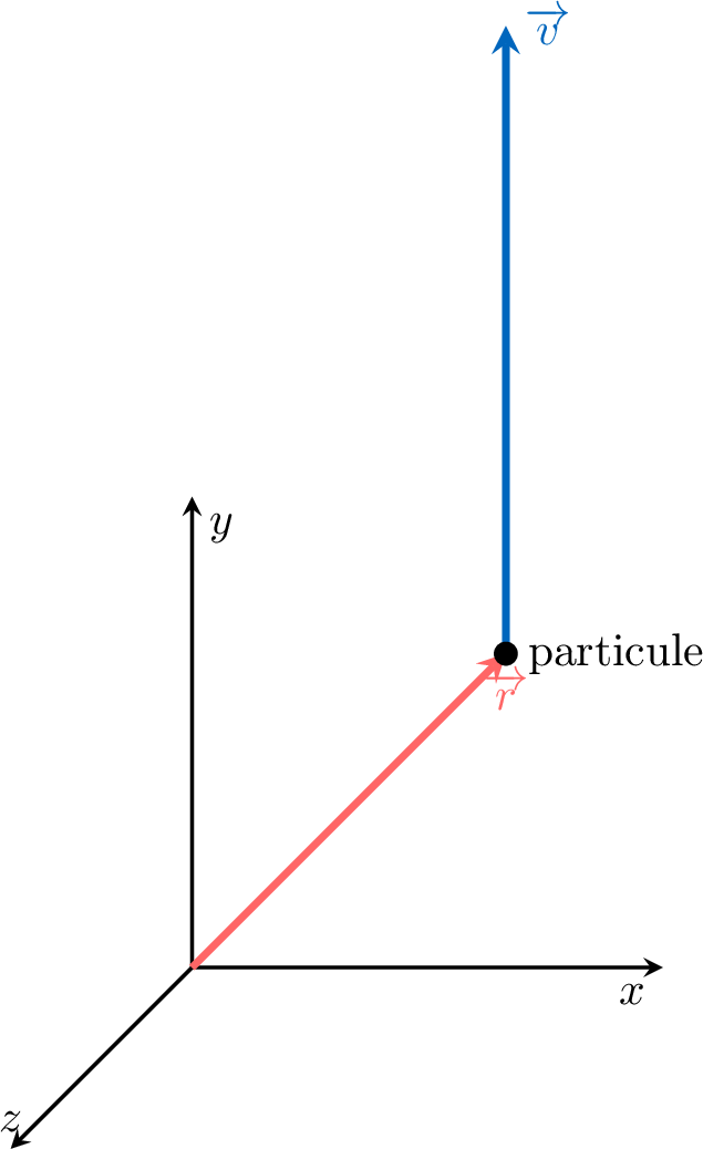 Calculer le vecteur moment cinétique \(\Vect{L}\) de la particule. Les unités seront des kg·m²/s.