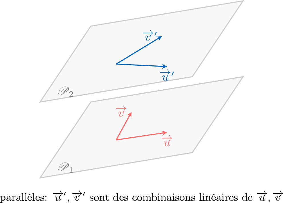 normal au plan s’il est orthogonal à la fois à \(\Vect{u}\) et à \(\Vect{v}\).