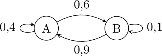 Considérer le diagramme de transition ci-dessous. Écrire la matrice de transition correspondante \(T\).