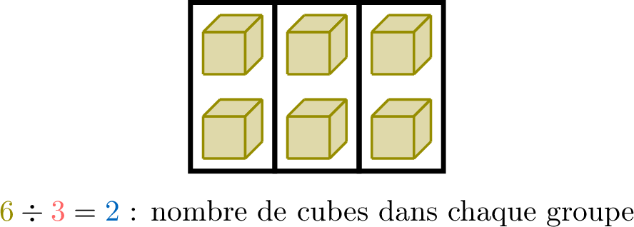 Parfois, tu connais le \(\textcolor{olive}{\text{total}}\) et le \(\textcolor{colordef}{\text{nombre de groupes}}\). La division t'aide à trouver le \(\textcolor{colorprop}{\text{nombre d'objets dans chaque groupe}}\).$$\begin{aligned}[t]\textcolor{olive}{\text{Total}} \div \textcolor{colordef}{\text{Nombre de groupes}} &= \textcolor{colorprop}{\text{Nombre dans chaque groupe}}\end{aligned}$$Par exemple, nous avons \(\textcolor{olive}{12}\) pommes à partager équitablement entre \(\textcolor{colordef}{4}\) amis.
