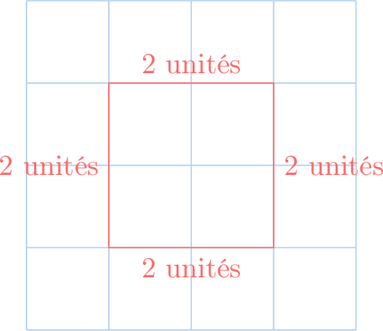 Les côtés mesurent 2 unités, 2 unités, 2 unités et 2 unités.