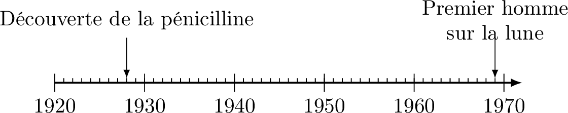 Cette frise montre des découvertes scientifiques majeures du XXe siècle :