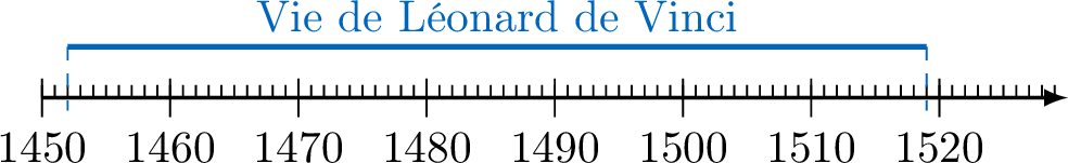 En utilisant la frise, calcule l'âge de Léonard de Vinci à sa mort.