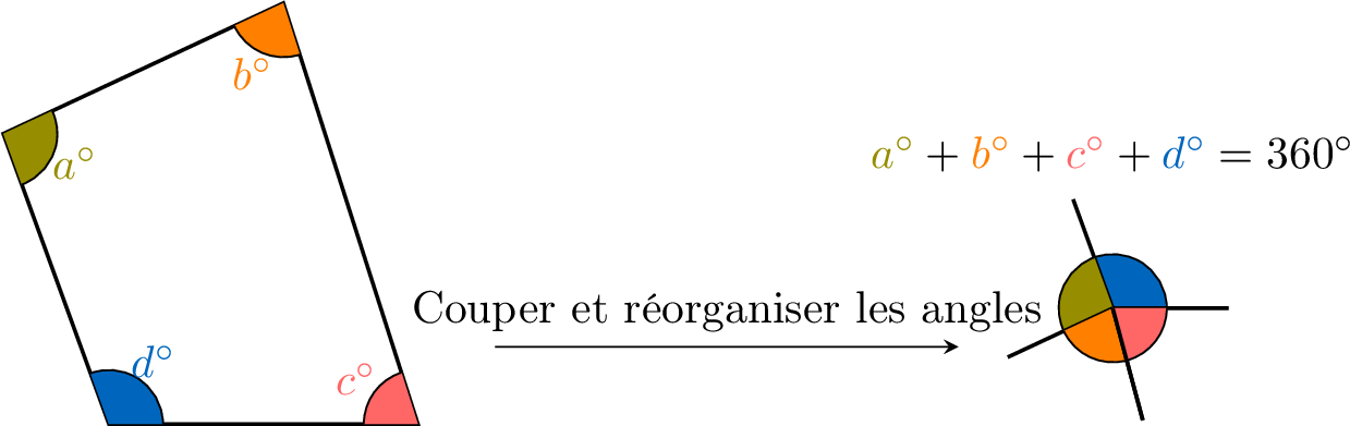 $$\begin{aligned}\text{La somme des angles du quadrilatère } ABCD&= \text{La somme des angles du } \triangle ABC \\