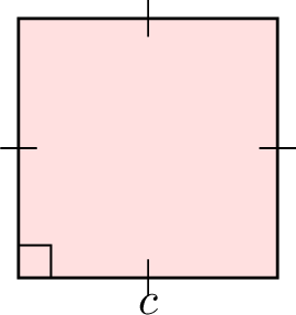 La formule de l'aire du carré est \(A = c^2\). Calcule l'aire d'un carré avec \(c=2\) cm.
