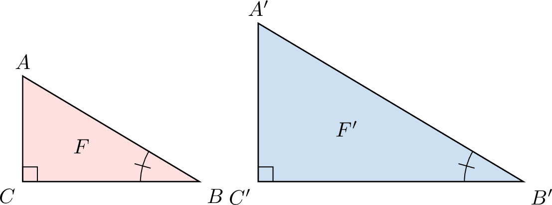 Choisis l’argumentation mathématique correcte expliquant pourquoi les figures \(\textcolor{colordef}{F}\) et \(\textcolor{colorprop}{F'}\) sont similaires.