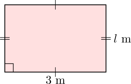L'aire du rectangle est de \(6\,\mathrm{m}^2\) et la longueur de l'un des côtés est de \(3\,\mathrm{m}\).