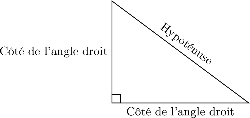 Si un triangle a des côtés de longueurs \(a\), \(b\) et \(c\), où \(c\) est le côté le plus long, et que ces longueurs vérifient \(a^2 + b^2 = c^2\), alors le triangle est un triangle rectangle, et l'angle droit est opposé au côté le plus long, \(c\).