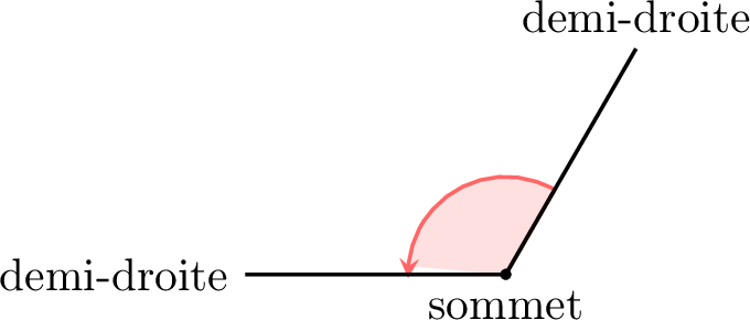 | Angle obtus | Entre un quart et un demi-tour | Entre \(90^{\circ}\) et \(180^{\circ}\) | |